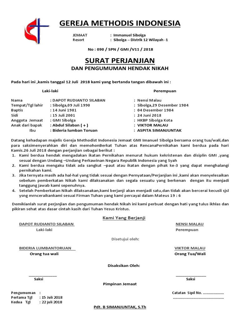 Formulir Permohonan Nikah Gereja from imgv2-1-f.scribdassets.com Tentunya setiap surat keterangan tersebut mempunya kekuatan hukum tersendiri dan memiliki peruntukannya masing masing. Cara mengurus surat nikah di kantor urusan agama kua dimulai dengan mengurus surat izin dari ketua rt hingga menyelesaikannya di kantor kecamatan. Contoh surat numpang nikah andon kawin. Contoh surat akta nikah kristen from 2.bp.blogspot.com jual jasa akte nikah catatan sipil legal terpercaya. :malus nah secara ane n laki ane org nya tipe2 cuek, ane ama laki ane gak ngeh tuh klo ternyata surat nikah yang ane punya itu ternyata surat nikah agama doanx. Dewasa ini, semakin marak kasus pencatatan sipil palsu yang dilakukan oknum calo. Agar pernikahan anda dapat diakui oleh negara, anda harus mendaftarkan pernikahan anda di kantor catatan sipil. Pernikahan yang diakui sah di indonesia sebelum dicatat di kantor catatan sipil adalah pernikahan yang sudah diakui secara agama.